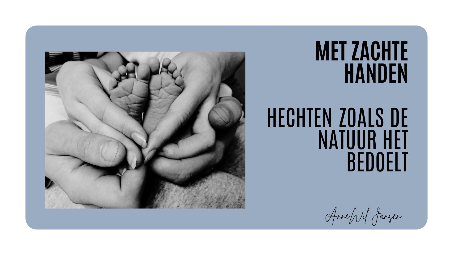 Anne-Wil Jansen. Oprichter van Met Zachte Handen, moeder, en voormalig kraamverzorgster en werkzaam geweest in de jeugdzorg. Met deze plek wil ik ouders een warm steuntje in de rug geven. Zodat je mag vertrouwen op jezelf en op je baby. Want de natuur heeft het al voor je bedacht, en ik ben hier om je te leren het te begrijpen.